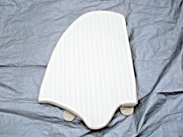 Carolina Skiff DLV port side bow cushion. This cushion was obtained by a closed Carolina Skiff dealer. There are no part numbers on the cushion. It is believed to fit a DLV 178, 198 or 218 however the exact boat models and length that it fits is unknown. The colors are chalk white and tan. The basic measurements of the this port side cushion is 30″ long as measured along the inner edge and 27″ wide at the aft edge and is 3″ thick. If you include the “U” shaped extension at the aft end of the cushion, the overall length is approximately 39″ long. Please look at the photos carefully and compare the measurements to determine if this is correct for your application. Although this cushion is listed as used, it may be new old stock. But because there are no identifying tags, is not in original packaging and is slightly soiled from storage it is being sold as used. Please ask questions before ordering because this cushion is being sold as-is and is not returnable. 2-0906P