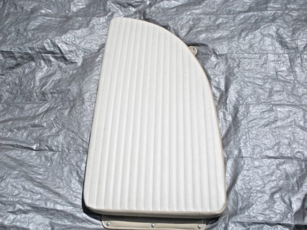 Carolina Skiff DLV starboard side bow cushion. This cushion was obtained by a closed Carolina Skiff dealer. There are no part numbers on the cushion and the exact boat models and length that they fit is unknown. The colors are chalk white and tan. The basic measurements of the this starboard side cushion is 50 1/2″ long as measured along the inner edge and 26 1/4″ wide at the aft edge and is 3″ thick. Please look at the photos carefully and compare the measurements to determine if this is correct for your application. Although this cushion is listed as used, it may be new old stock. But because there are no identifying tags, is not in original packaging and is slightly soiled from storage it is being sold as used. Please ask questions before ordering because this cushion is being sold as-is and is not returnable. 2-0898P