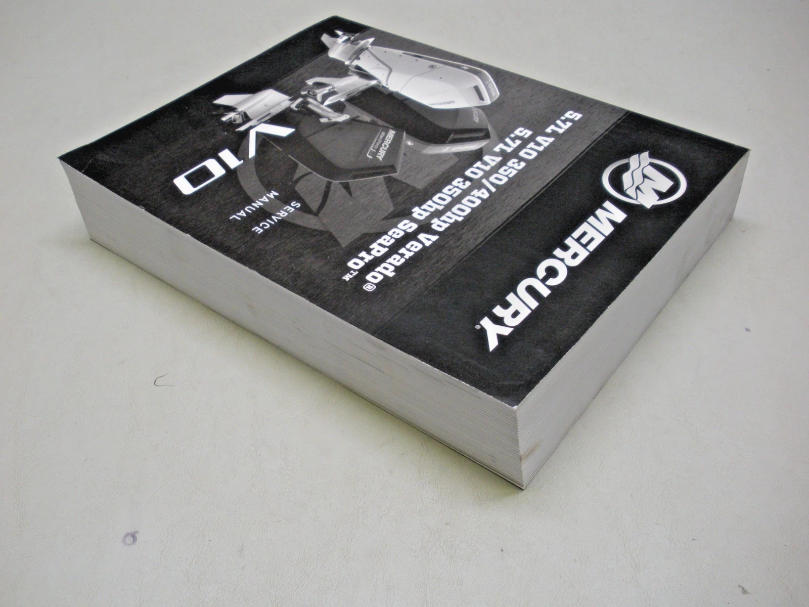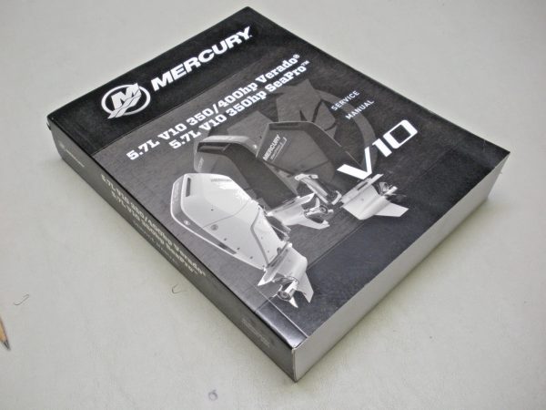 Genuine Mercury service manual 90-8M0205422. For use with 5.7L V/10 350/400 H.P. and 5.7L V/10 350 H.P. Sea Pro. Publish date 01/23. This manual has seen very little use but has some soiling to the edges from storage. 6-1121M