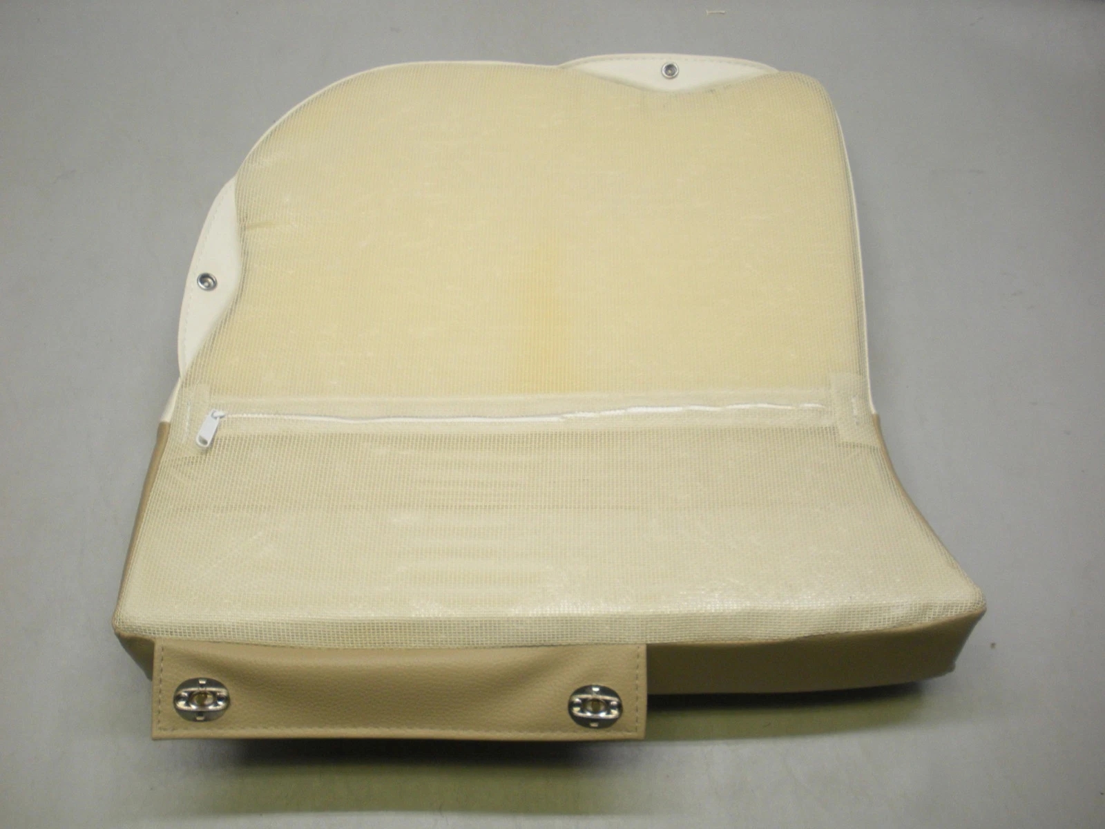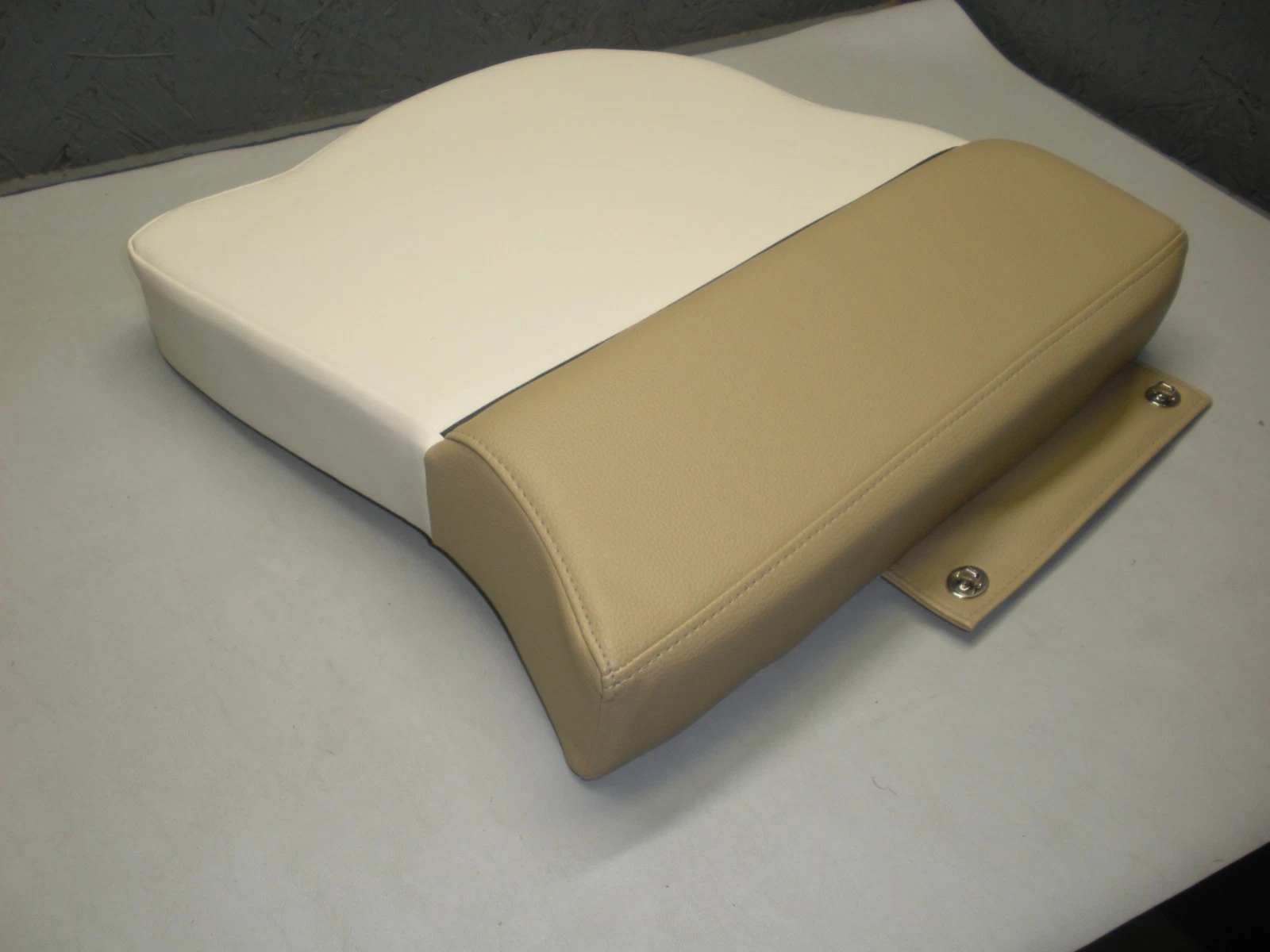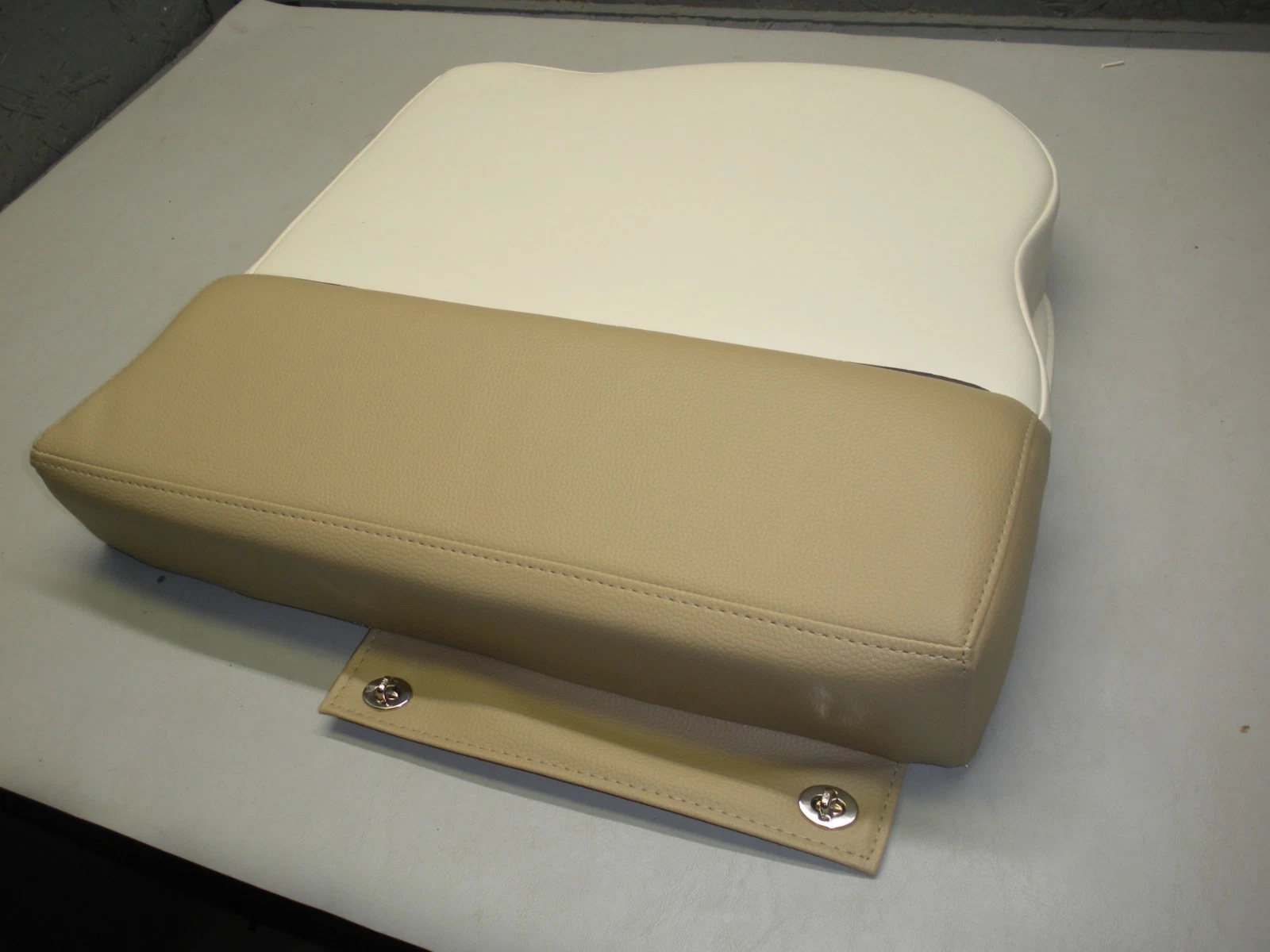 Port side Pioneer Boats aft bottom seat cushion. Possibly fits Islander models. This item was obtained from a closed Pioneer Boats dealer. There is no part number available. Please look at the photos carefully and compare the measurements to determine if this is correct for your application. Please ask questions before ordering because this seat part is being sold as-is and is not returnable. This item is more than likely a new part but because there is no original packaging and no identifying tags, it is being sold as used. It is in very nice condition with no rips, tears or damage. Some basic measurements are; 20 1/2″ wide at the front of the cushion and 19″ deep. 2-0946P