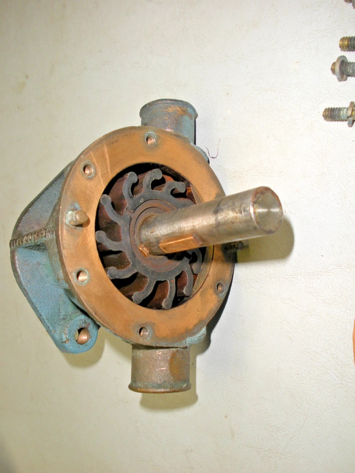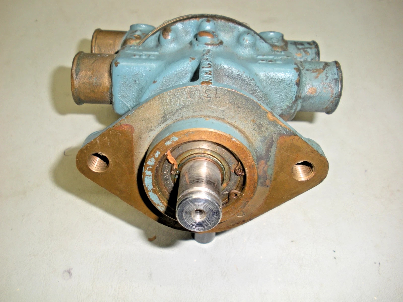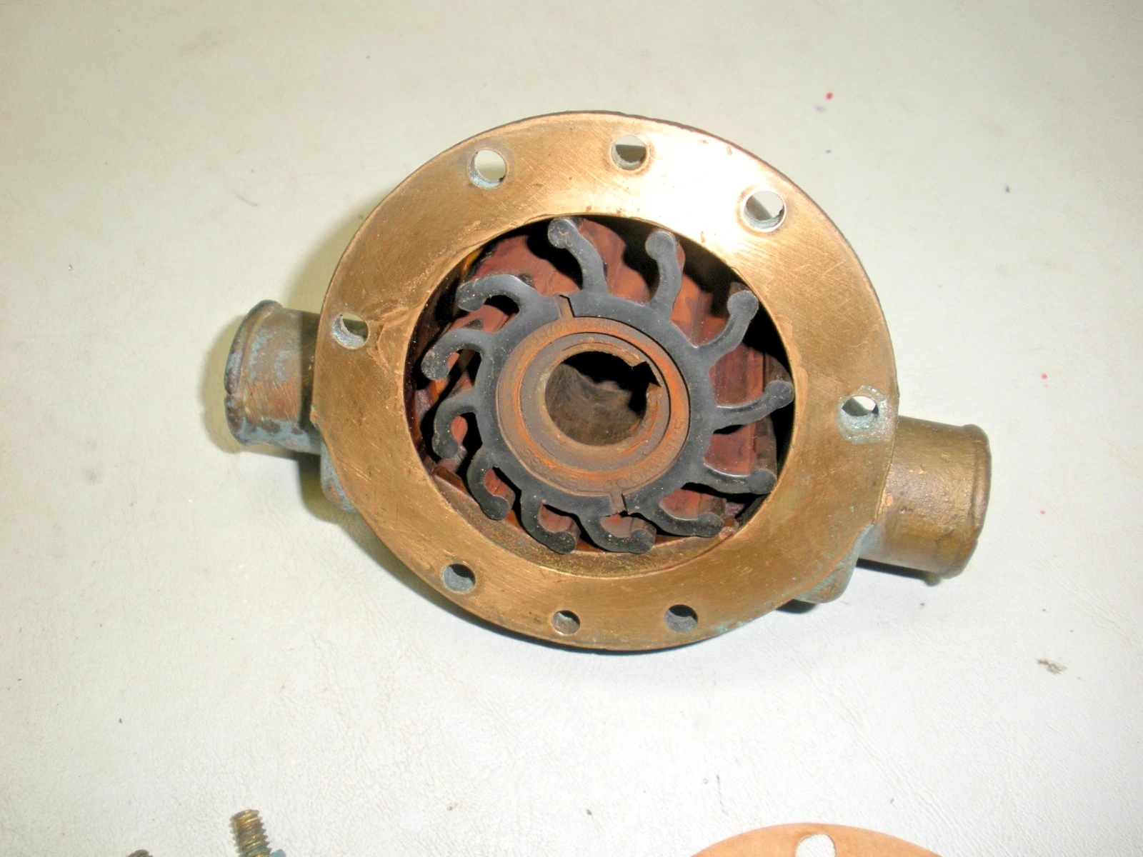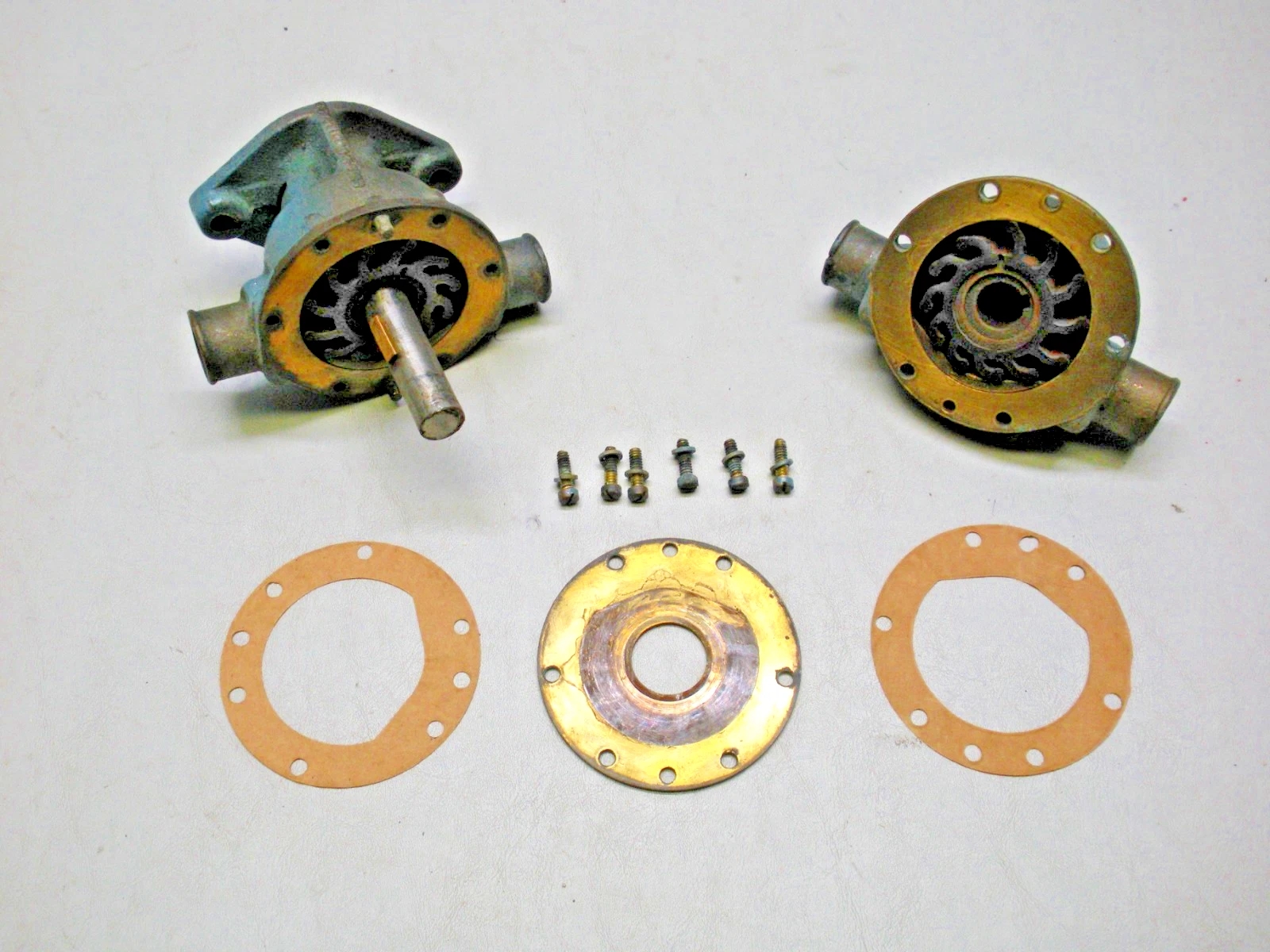 Used Sherwood D65 double pocket water pump. Fits Chrysler 2847631. This pump was rebuilt many years ago and carried on the boat as a spare. It has been disassembled to show the condition of the pump and has been reassembled. A refresh of this pump would be suggested. This pump is being sold as-is because current working condition is unknown although it does spin freely. 6-1196TR